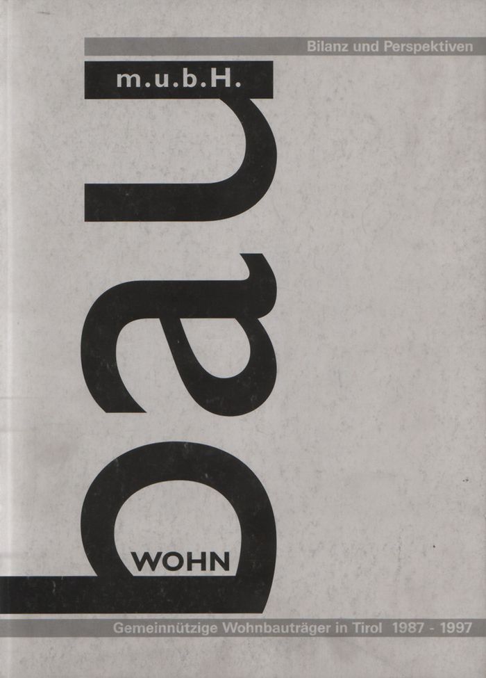 Gemeinsam mit den Tiroler Gemeinnützigen Wohnbauträgern wurde 1997 eine Ausstellung, eine Publikation und ein Symposium zu Bilanz und Perspektiven des Wohnbaus konzipiert und abgewickelt.