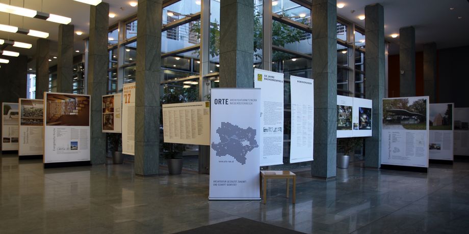 Eröffnung der Ausstellung aus Anlass des 50-Jahrjubiläums des Österreichischen Bauherrenpreises (Dauer bis 29. November) im Foyer des Landhauses in St. Pölten.