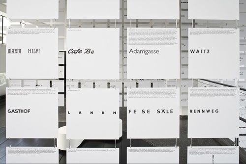 Der Architekt, Grafiker und Typograf Andreas Uebele recherchierte dazu die Schriftkultur im öffentlichen Raum Innsbrucks, fotografierte die an Bauten vorgefundenen Logos, Geschäftstafeln, Hinweisschilder und Beschriftungen aller Art und destillierte daraus ein "alphabet innsbruck", das – ergänzt durch kurze augenzwinkernde Texte zur Typografie von Georg Salden sowie Stadt- und Hausgeschichten von Gretl Köfler– im aut als raumübergreifende Installation präsentiert wird.