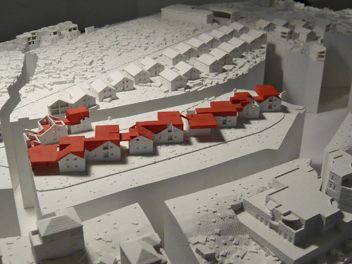 Für die jüdische Siedlung P’sagot entwickelten sie „Deparceling“ und projizieren eine Karte von 1954, die die ursprüngliche Parzellierung des Gebietes auf dem Hügel Jabel Tawil zeigt, über die aktuelle Siedlungsstruktur. Die alten, gewachsenen Grenzlinien schneiden willkürliche Wege durch die suburbane Struktur, neue Beziehungen zwischen Häusern und Parzellen, Innen- und Außenräume, öffentlichen und privaten Räumen können entstehen.