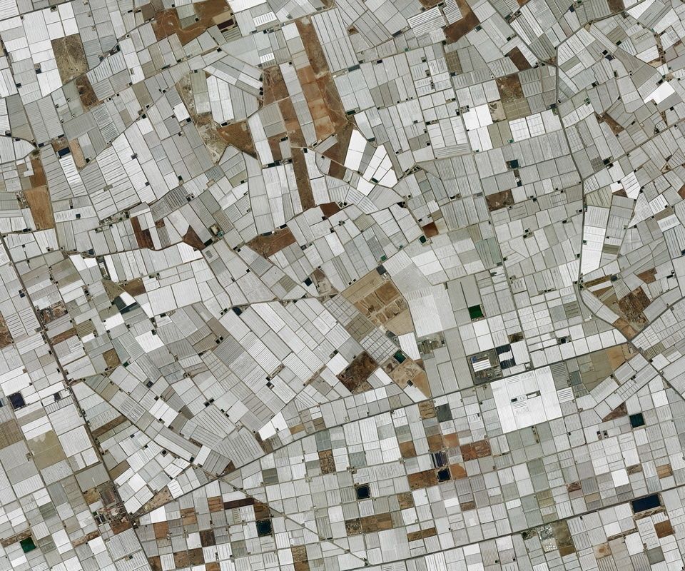 Durch den Wechsel zwischen Distanz und Nähe offenbaren sich in Engels Fotografien entweder kleinste Details oder es dominieren großflächige Muster. So werden Siedlungsstrukturen zu einem ornamentalen Gewebe aus verwobenen Linien, die Flachdächer unzähliger Gewächshäuser zu einem dichten, teppichartigen Mosaik. Die Grüns eines Golfkurses in einer nackten, felsigen Landschaft erinnern plötzlich an eine ausgestreckte Hand und die Ränder künstlich bewässerter Felder gehen für einen Moment als Muster von Pailletten auf einem dekorativen Stoff durch. Der „göttliche Blick“ von oben vermittelt eine Abstraktion in Linien und Flächen, eine Über-Realität, die man so nie sehen oder erleben kann.