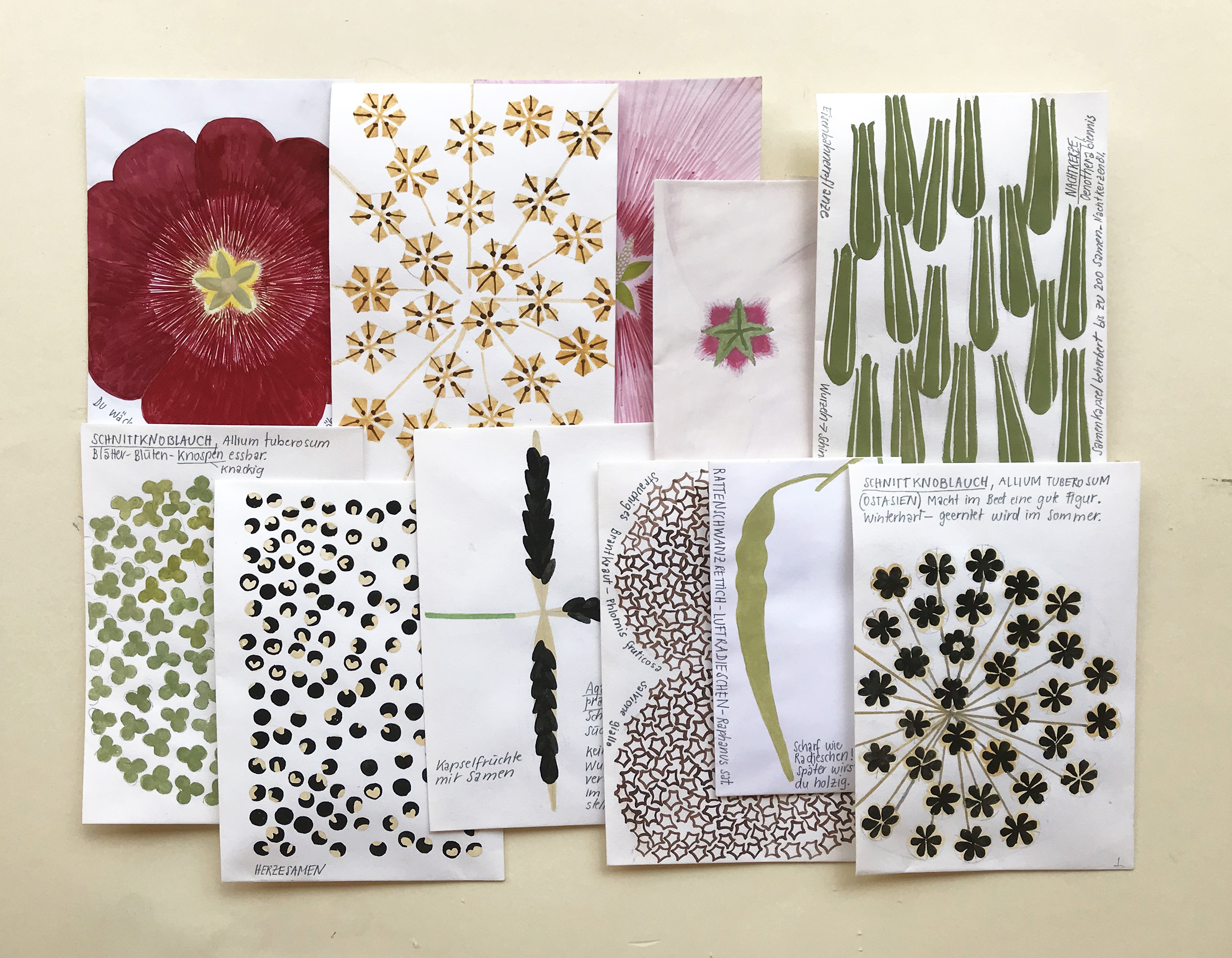 Gärten und Pflanzen sind die Passion der Südtiroler Künstlerin Carmen Müller. Sie ist selbst leidenschaftliche Gärtnerin, erkundet seit vielen Jahren als "Gartenforscherin" die unterschiedlichsten Arten von Gärten und verarbeitet die dabei gewonnenen Eindrücke malerisch, graphisch oder als Stickerei. Fasziniert vom Formen- und Farbreichtum der Natur arbeitet die Künstlerin an Serien, in denen sie sich vom Naturalistischen entfernt und den der Pflanze innewohnenden Formwillen abstrahiert und poetisiert.