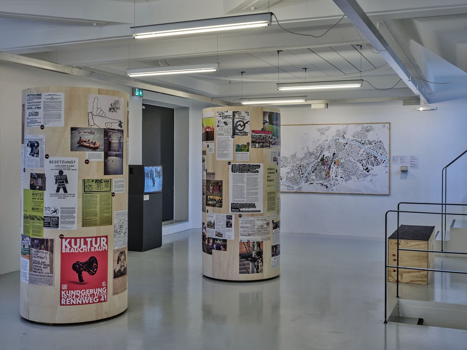 Anlässlich von 50 Jahre DOWAS (Durchgangsort für Wohnungs- und Arbeits­suchen­de) widmet sich die Ausstellung „geld . macht . raum“ den komplexen Problemstellungen einer Ökonomie des Wohnens anhand von Hintergrundinformationen, Fallbeispielen, Videos und künstlerischen Arbeiten.