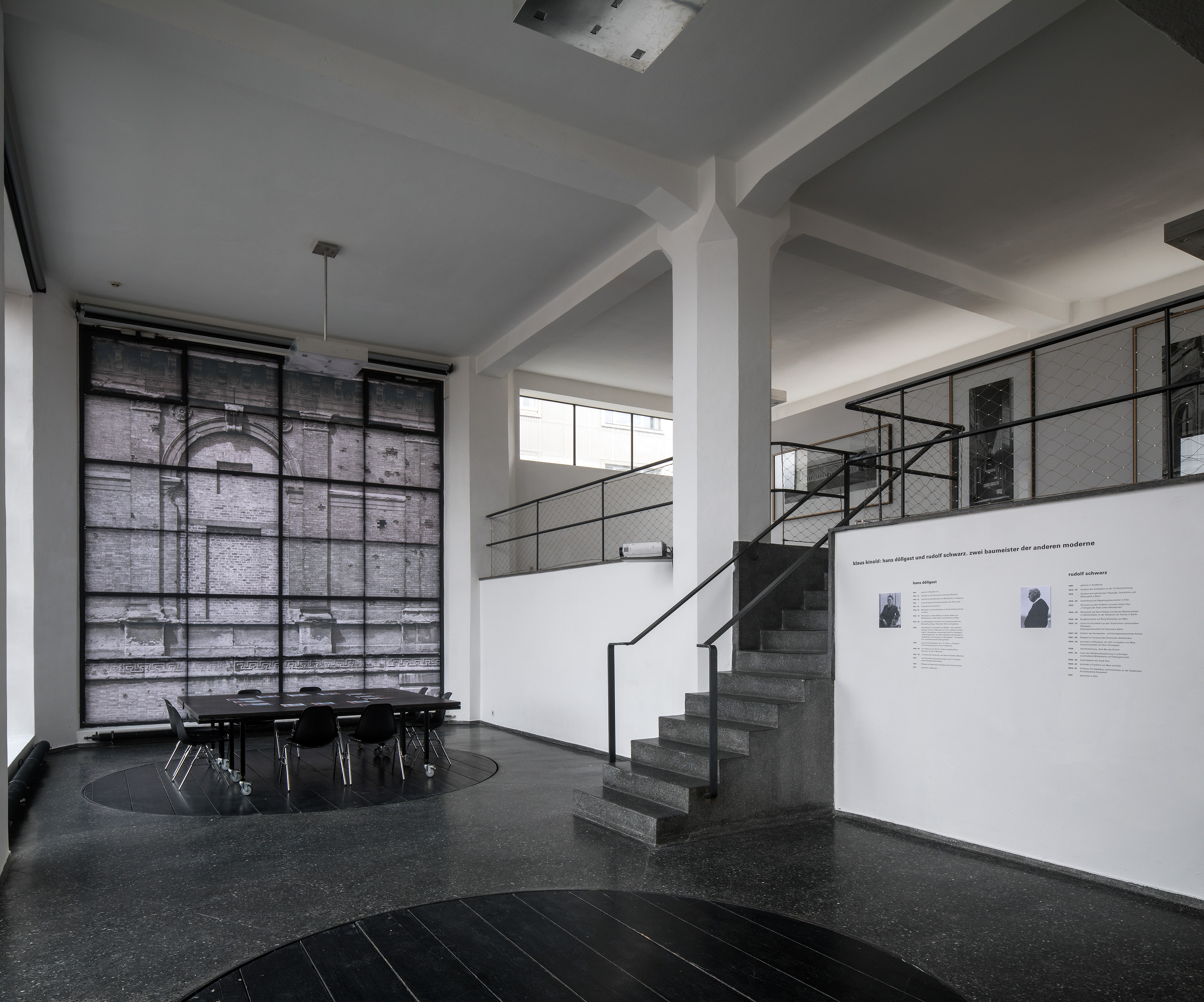 Im Mittelpunkt dieser ersten, vom aut und dem Archiv für Baukunst gemeinsam konzipierten Ausstellung, steht der in München lebende Fotograf, Architekt und Gestalter Klaus Kinold (geb. 1939), der mit seinen Fotografien seit vielen Jahrzehnten die Nachkriegsmoderne in Deutschland dokumentiert. Das Schaffen von Hans Döllgast (1891 – 1974) und Rudolf Schwarz (1897 – 1961) nimmt eine zentrale Rolle in seinem Werk ein. Fasziniert von deren materiell zurückhaltender und stark auf den Raum wie die Atmosphäre ausgerichteter Architektur, widmete sich Klaus Kinold ab den frühen 1980er Jahren aus Empathie diesen beiden „Baumeister der anderen Moderne“, die – entgegen den Vertretern der sogenannten „radikalen Moderne“ – einen zurückhaltenden und in gewissem Sinne „konservativen“ Ansatz verfolgten.