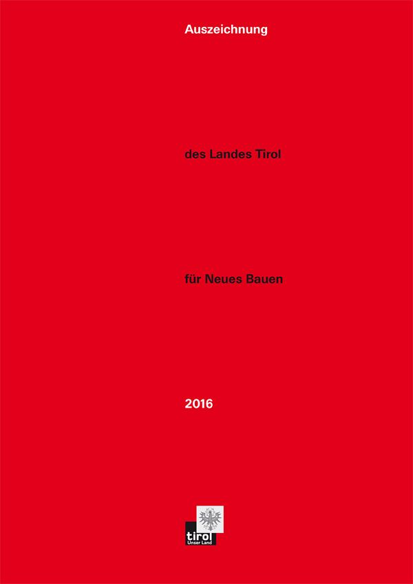 Eine Dokumentation sämtlicher bei der „Auszeichnung des Landes Tirol für Neues Bauen 2016“ prämierter Bauten. Innsbruck 2016, 24 Seiten, zahlreiche Farbabbildungen, 21 x 29,7 cm, gratis (Portospesen)