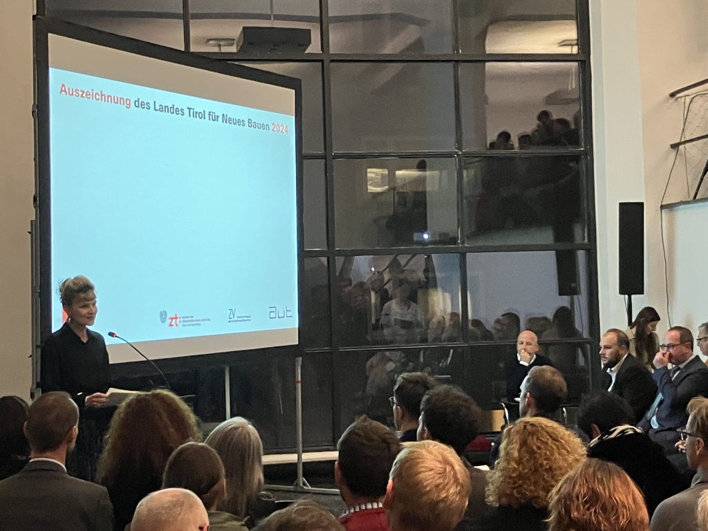 preisverleihungIm Rahmen einer Festveranstaltung im aut werden die "Auszeichnungen des Landes Tirol für Neues Bauen 2024" von Melanie Wiener als Vertreterin des Landes Tirol vergeben.