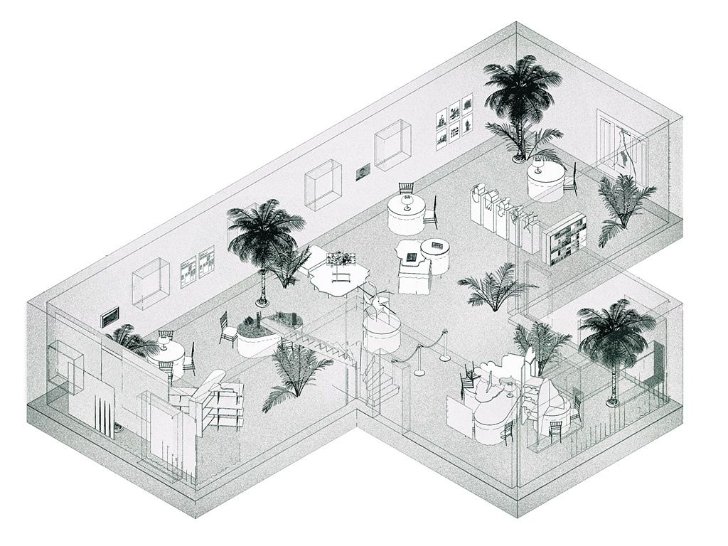 Inspiriert vom Konzept des Salon beziehungsweise speziell vom Salon de Paris (1667) – einer Kunstausstellung der Académie des Beaux-Arts in Paris, Frankreich – wird auch hier das Exponat selbst zur Kulisse. Hier wird der Diskurs im Raum angeregt und der Rahmen für aufkommende Interpretationen gesetzt. So wie die Fülle von Referenzen des originalen Cocoanut Grove und dessen Aneignungen stehen auch hier die einzelnen Komponenten, die hinzugefügt oder herausgenommen werden, in Bezug auf Ursprung, Methode und Anwendung sowohl in Beziehung als auch im Widerspruch zueinander.