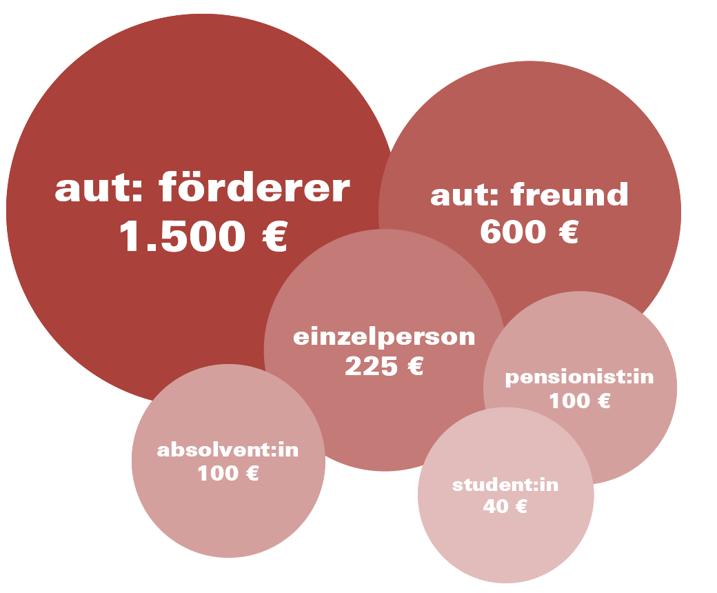 Neben der Möglichkeit, als Einzelperson Vereinsmitglied zu werden, richtet sich die Kategorie aut: freunde insbesondere an größere architekturbüros und die kategorie aut: förderer vor allem an unternehmen oder juridische Personen, die mit ihrem Beitrag die Arbeit des aut unterstützen. Der Mitgliedsbeitrag kann dann auch steuerlich geltend gemacht werden.