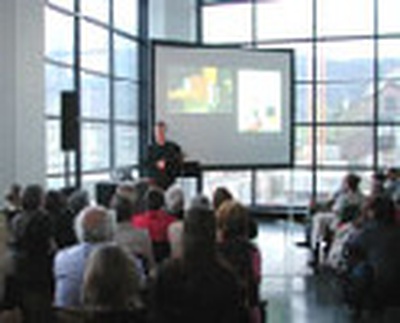Martin Rauch, Pionier des modernen Lehmbaus spricht in seinem Vortrag über die zeitgemäße Anwendung dieser uralten Bautechnologie.