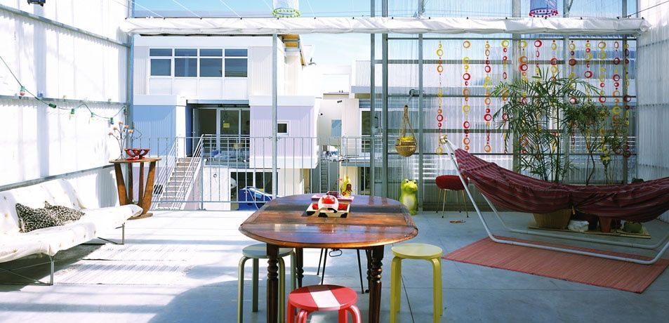 In their first project, the single-family House Latapie from 1993, they already formulate the basic features of their further work. An adapted greenhouse construction is pulled over a simple wooden structure and defines a climatic shell that acts as a winter garden or extended living space. In this way, 185 m2 of usable space arose for what was then just over 55,000 Euros. The greenhouse theme subsequently assumes a central role in their work, because there is hardly a project that does not take up certain elements or set pieces of this industrial horticultural product.