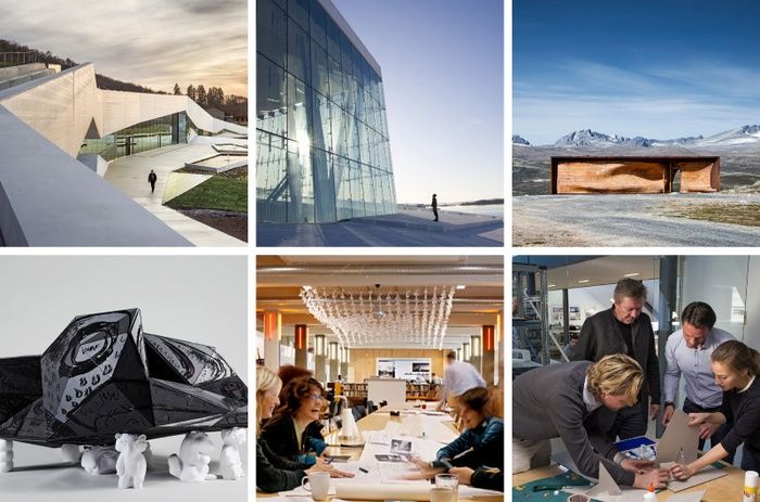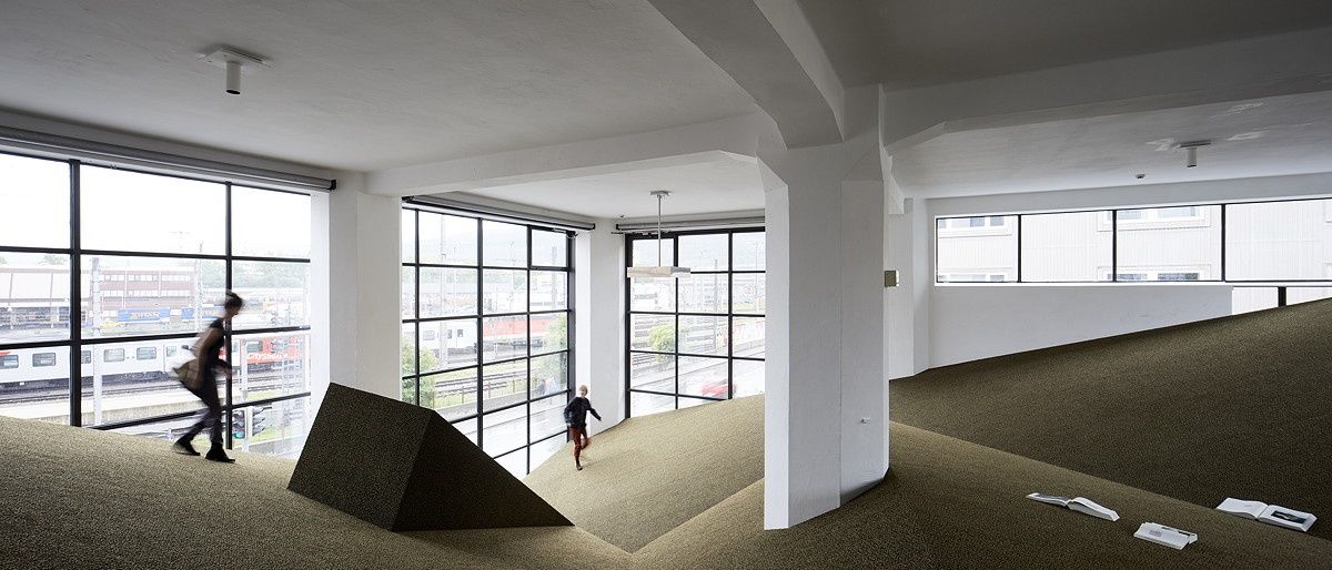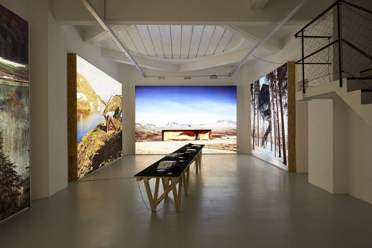• Blick in die Ausstellung „Snøhetta: Relations“ im aut mit der von Snøhetta realisierten ­„Sozialen Landschaft“