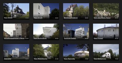 Für die 2019/20 gezeigte Ausstellung "Über Lois Welzenbacher" fertigte Lukas Schaller filmische Dokumentationen über noch erhaltene Bauwerke von Lois Welzenbacher an, die hier zum Nachsehen zur Verfügung stehen.