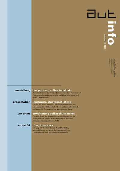 Die Ausgabe 3/08 der Programmzeitschrift aut: info mit Hintergrundinformationen zur Ausstellung „Bas Princen, Milica Topalovic: Invisible frontier“ sowie zum Programm des aut zwischen Juni und September 2008.
