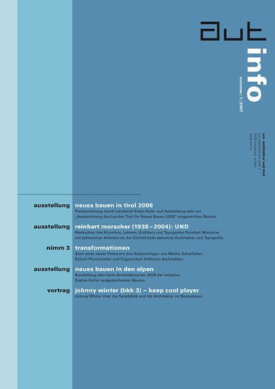 Die Ausgabe 1/07 der Programmzeitschrift aut: info mit Hintergrundinformationen zu vier Ausstellungen sowie zum Programm des aut zwischen November 2006 und März 2007.