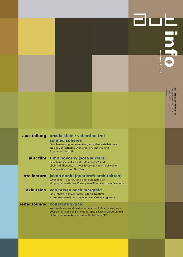 We will gladly place you on our mailing list and regularly send you information about aut. architektur und tirol events by post or by e-mail. (in german)