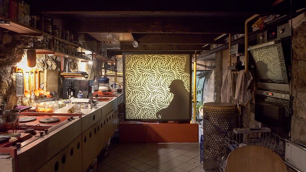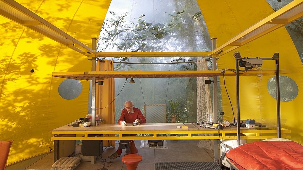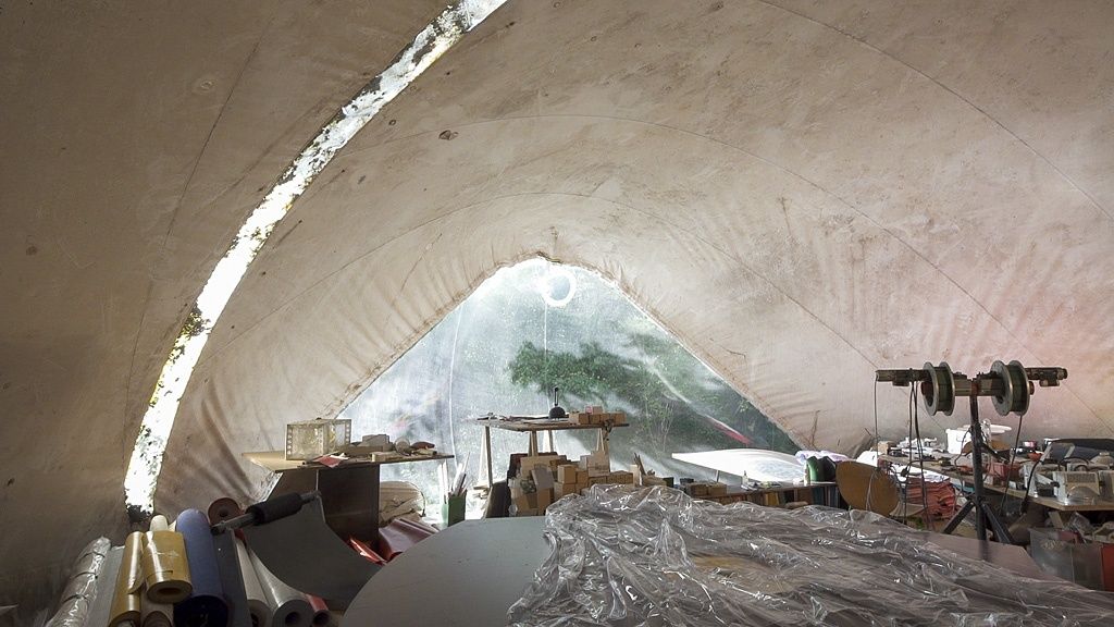 • Garten mit "Raumstruktur", "Klangstruktur mit Resonanzkugel" und Atelierhaus, La Ferté-Alais
