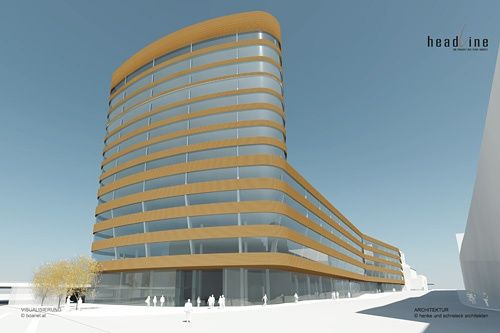 architekturtageAnstelle des früheren Postverteilerzentrums nahe des Innsbrucker Hauptbahnhofs entsteht derzeit ein multifunktionaler Gebäudekomplex der PEMA-Holding – das "Headline". Herzstück des von henke und schreieck Architekten geplanten Neubaus ist ein 49 Meter hoher Turm mit einem Designhotel, einem Restaurant und einer Aussichtsterrasse.