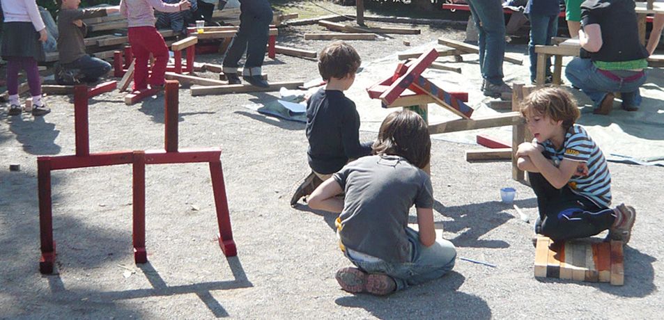 Einen ganzen Nachmittag lang wird gemeinsam gesägt, geschraubt, gebohrt, gehämmert, gemalt und vieles mehr. Bei diesem großen Experiment erfahren wir spielerisch, wie lustvoll das Bauen mit recycelten Rohstoffen sein kann.