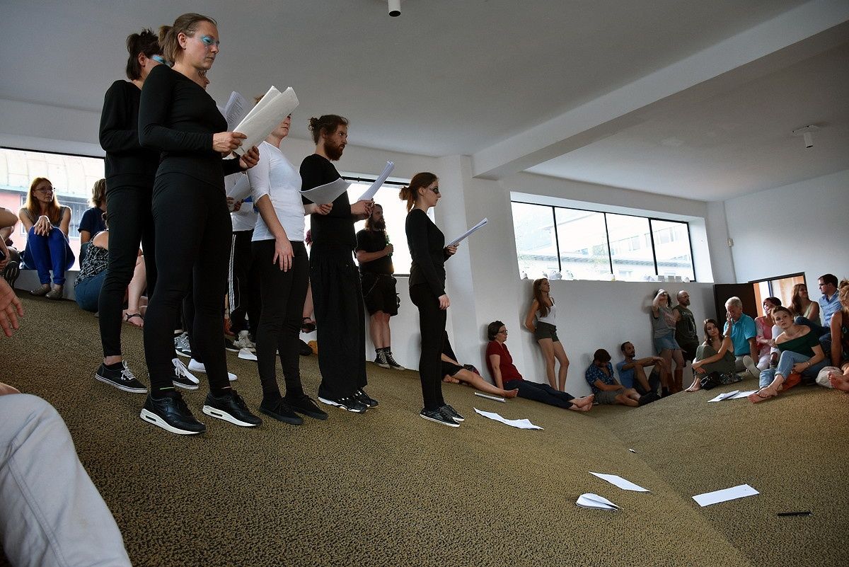 Bereits 2015 hat die Tiroler Schauspielschule Innsbruck das von Volker Giencke transformierte aut zur Bühne gemacht, heuer ist es die räumliche Intervention von Snøhetta, die Andreas Pronegg mit seinen SchauspielschülerInnen bespielt.