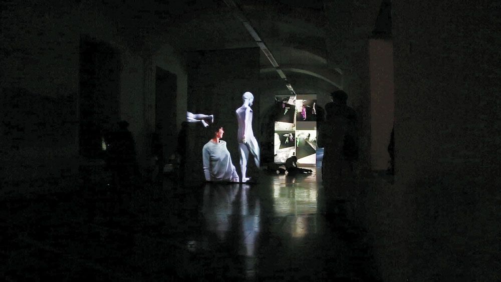 So ermöglicht die Installation eine Bewegungsrecherche durch die Interaktion mit virtuellen Figuren. Eingebettet in ein technisches Setup werden die Aktionen der beiden Tänzerinnen mittels Kameras in Echtzeit auf Projektionsflächen übersetzt. In gegenseitigen Übersetzungsvorgängen verschränken sich virtuelle Figuren und menschliche Körper ineinander. INTRA SPACE wird zu einem experimentellen Gerüst, das sich kritisch mit dem Potential von geteilter Körperlichkeit befasst. Eine räumliche Choreografie, die auf poetische Weise über die Beschaffenheiten und Konstruktionen unserer Körper in naher Zukunft spekuliert.
