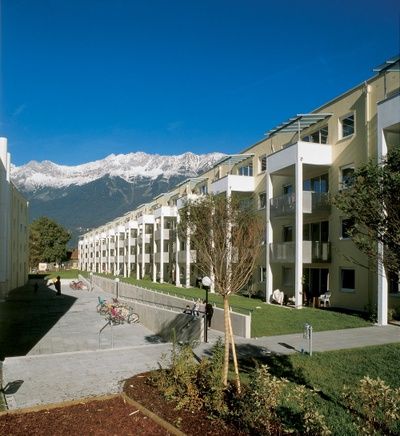 Führung mit den Architekten Armin Kathan, Martin Schranz und Erich Strolz durch den neuen Wohnbau in der Höttinger Au.