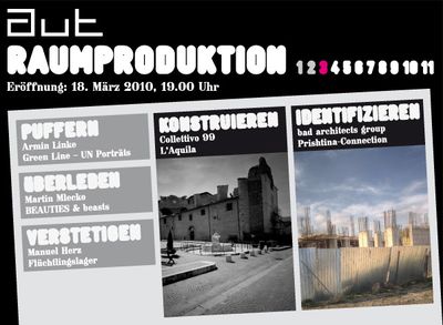 Eröffnung der beiden Ausstellungen "Collettivo 99: L'Aquila – riconversione oltre la ricostruzione" und "bad architects group (Ursula Faix, Paul Burgstaller): Prishtina-Connection".