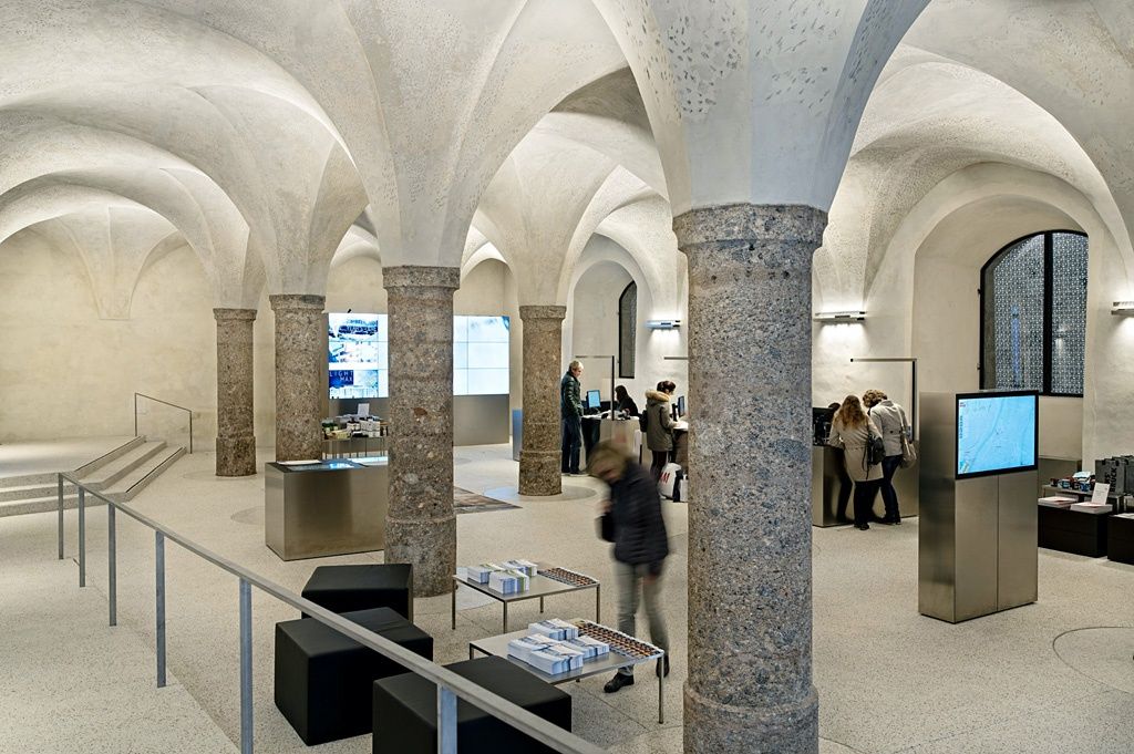 Die Innsbrucker Tourismus Information befindet sich im historischen Gewölbe des ehemaligen „Hofstall“, einem 1580 an der damaligen Altstadtmauer angebauten Gebäude. Im Zuge der Neugestaltung bereinigten Manfred Sandner und Betina Hanel den Innenraum, sanierten Außenfassade, Innenwände und Brecciensäulen und senkten den Fußboden auf das ursprüngliche Niveau ab. Im Kontrast zur symmetrischen 3-Schiffigkeit der Renaissance-Halle gaben sie dem Raum durch wenige Eingriffe – die als Betonskulptur gestaltete behindertengerechte Rampe, Sitzstufen sowie ein zusätzlicher Eingang in der Stiftgasse – eine neue, diagonale Ausrichtung.
