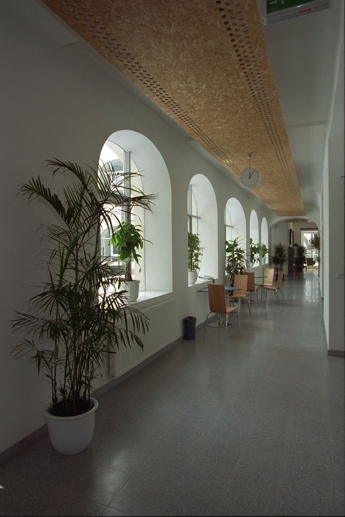 Die Rückführung der Altsubstanz aus dem 17. Jahrhundert auf ihre ursprüngliche Struktur und die bewusste Addition zeitgemäßer Elemente erwirken klare Orientierbarkeit, Raumerlebnis, Offenheit, Transparenz und transportieren als bauliche Umsetzung die theoretischen Ansätze der modernen Psychiatrie. Die angestrebte Verdrängung der Krankenhausluft betont den Grundsatz, nicht "kranz" zu sein, sondern "gesund" werden zu wollen. (Peter Mayrhofer, Martin Both)
