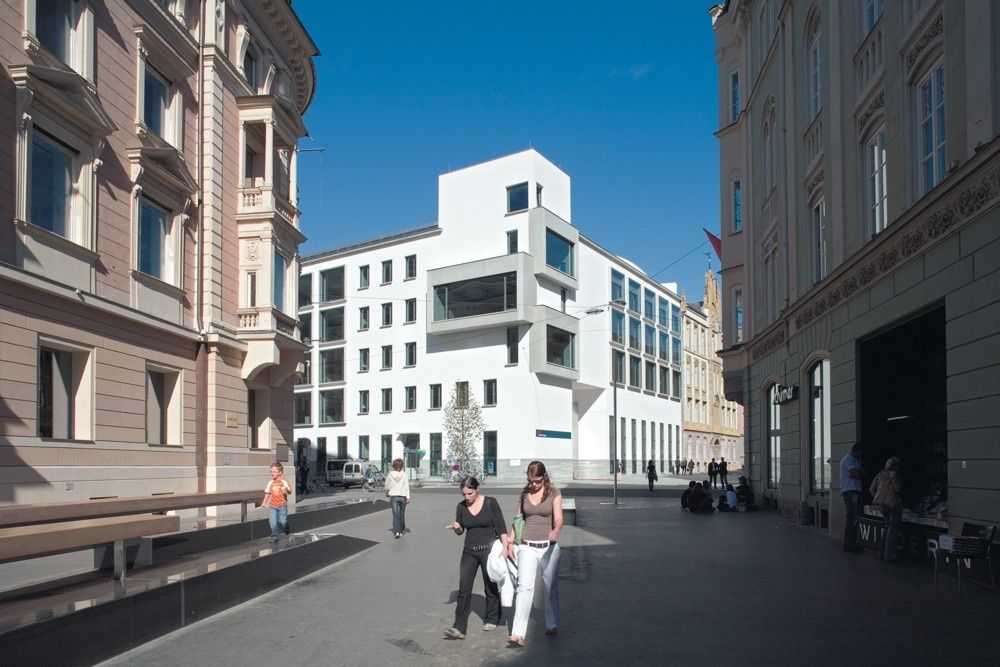 Der in Tirol geborene Architekt Heinz Tesar lässt sich in keine der heute geläufigen architektonischen Kategorien einordnen und ist deshalb sowohl für Traditionalisten wie Modernisten „gleichzeitig ein Ärgernis und eine Herausforderung“ (Friedrich Achleitner). Seine Bauten sind ebenso hoch gerühmte wie umstrittene Solitäre in der Architekturlandschaft. Mit der neuen Zentrale der BTV realisiert Tesar im Zentrum von Innsbruck ein Stadtpartikel, welches eine neue Qualität des Ortes definiert. Auf 13.500 m2 Nutzfläche entsteht das BTV StadtForum als markantes Bürogebäude mit einer hohen, lichten Eingangshalle als identitätsstiftende Mitte des Hauses. Transparente Raumstrukturen und größtenteils natürlich belichtete und belüftete Büroflächen schaffen im angeschlossenen Kundenkompetenzzentrum Innenräume mit freundlicher und heller Atmosphäre.