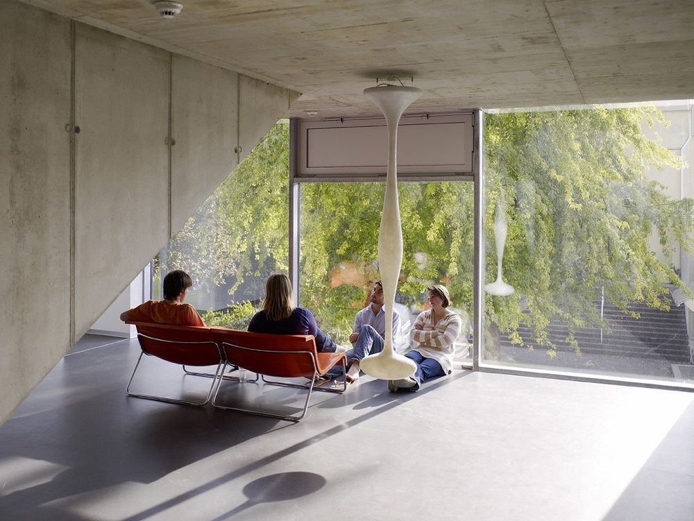 Großzügige, mit Balkonen ausgestattete Zimmer stellen den Bewohnern viel privaten Raum zur Verfügung. Besonderes Augenmerk wurde auf die Gestaltung des Übergangs von der Stadt zu den Wohnbereichen gelegt. Der öffentliche Raum unter den Gebäuden, die Aufgangstunnel und unterschiedlich ausgerichtete Gemeinschaftszonen bilden Raumsequenzen, die durch eine differenzierte Materialverwendung betont werden.