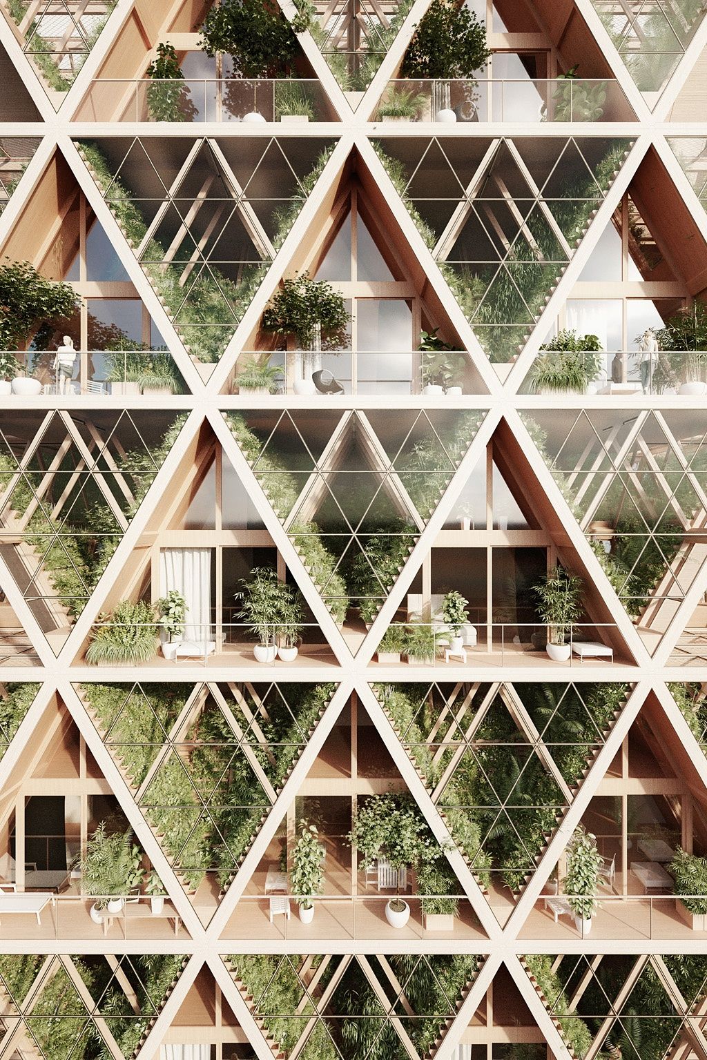Derzeit arbeitet das Studio Precht beispielsweise an „The Farmhouse“ – einem modularen Holzbau, bei dem die Bewohner*innen in vertikalen Gärten ihre eigenen Lebensmittel produzieren können und das so konzipiert ist, dass es schnell und mit minimalen Auswirkungen auf die Umgebung aufgebaut werden kann – oder an „Bert“, einem ebenfalls modularen Konzept für kleine, verspielte Baumhäuser, deren von einem Baumstamm abgeleitetes Design möglichst wenig Grundfläche beansprucht.