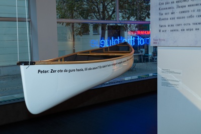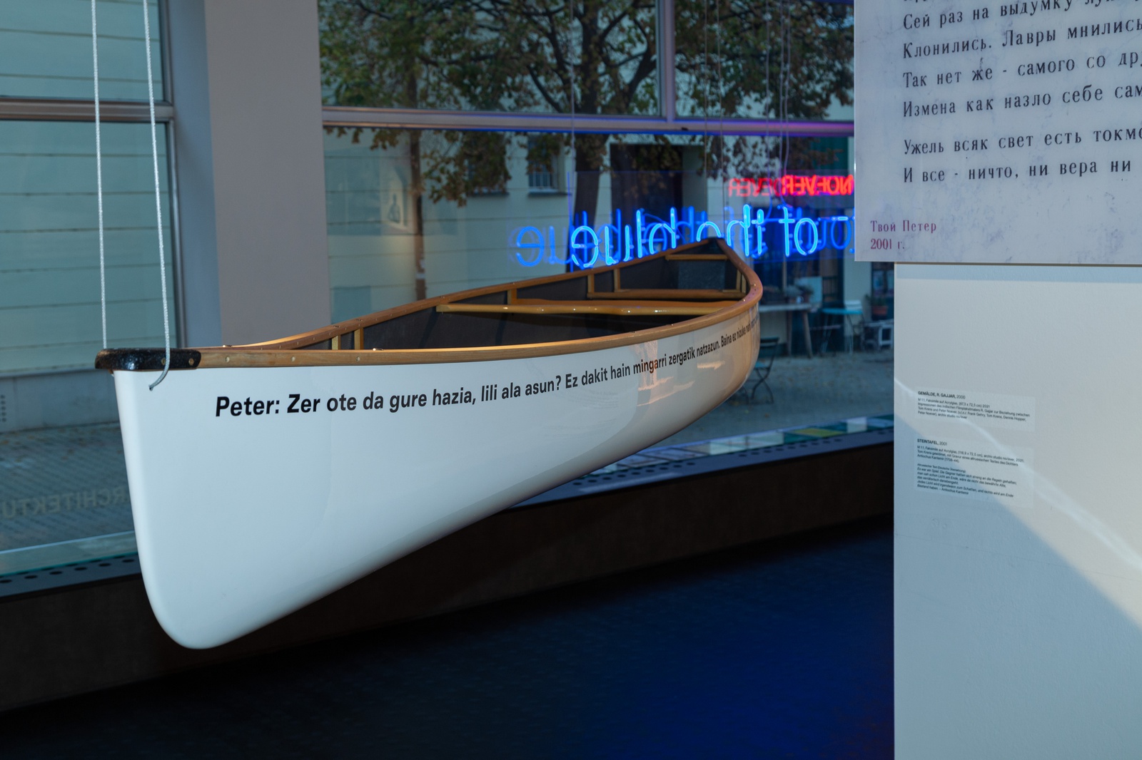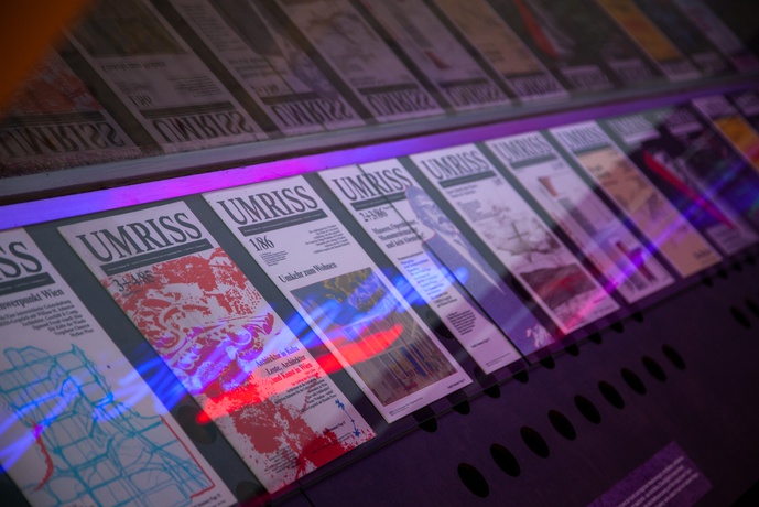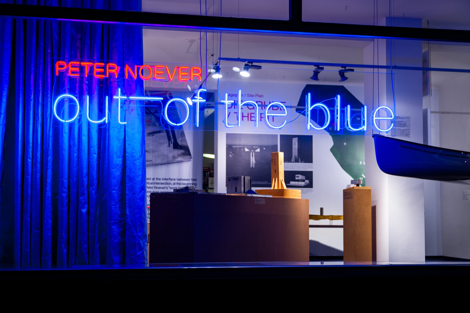 In der Architekturgalerie RAUMBURGENLAND contemporary, im Zentrum von Eisenstadt, werden von 5. November 2021 bis 20. Mai 2022, speziell für diesen Anlass angefertigte Modelle, Objekte, Pläne, Zeichnungen und Fotos präsentiert. Die Grube / The Pit ist der inhaltliche Dreh- und Angelpunkt der Schau und der gleichnamigen Publikation out ̅of the blue – Art + Architecture Out There.