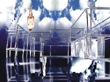 "architekturraumkommunikative Liveplastik“. Als real Vorhandenes bildet sie die Spange zum im virtuellen Raum der Videoschleifen eingebetteten Individuum.