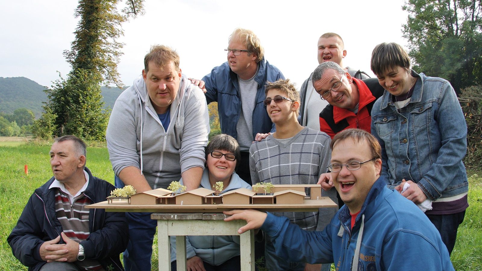 Schon von Beginn an waren die Klientinnen in die Planung der neuen Werkstätte miteinbezogen. Vorgegeben waren ein Grundstück, das sich von der Bundesstraße über eine Länge von 120 Metern mit 35 Metern Tiefe zur Triesting hin erstreckt, sowie der Wunsch nach einem barrierefreien, ebenerdigen Bau mit 1000 m² Nettofläche und weiteren 100 m² Lagerfläche, mit Innenhöfen und einem Garten. Ziel des Entwurfes war es, innerhalb einer so großen Anlage, angemessene Strukturen zu schaffen und Wohnlichkeit entstehen zu lassen aber auch den einzelnen Arbeitsgruppen individuellen Raum zu bieten. Dies wurde erreicht durch die Staffelung von vier quergestellten Häusern mit zwischengeschalteten Innenhöfen, die über einen Gang verbunden sind.