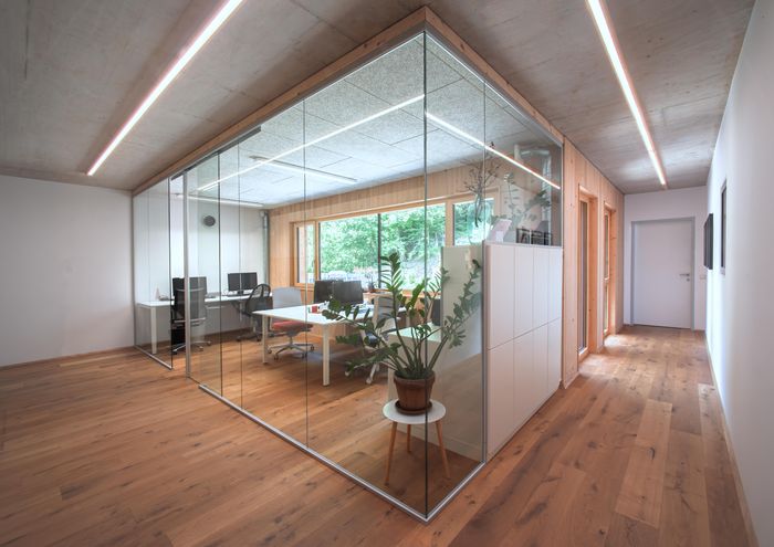 Budgettreue war besonders wichtig, das Grundstück besonders schwierig. Die Straße verläuft im Süden, es gilt Bauklasse II – also bis acht Meter Höhe, der Hang steigt bis zur nördlichen Grundgrenze stolze sechs Meter an. Ein geologisches Gutachten ergab, dass der Boden nicht tragfähig war, alles musste pilotiert werden. Es brauchte mantelverpresste Bohrpfähle und die Kosten stiegen. „Das war unverhältnismäßig teuer. Wir mussten den rechten Bauteil in seiner Größe reduzieren und brauchten den passenden Polier, der nicht nur weiß, was nicht geht, sondern was geht.“ Beim Innenausbau – wie Bodenlegen, Trockenbau, Elektro- und Haustechnik – gab es sehr viel Eigenleistung. „Das erfolgte auf Werkvertragsbasis und musste als Helferleistung frei gegeben werden.“