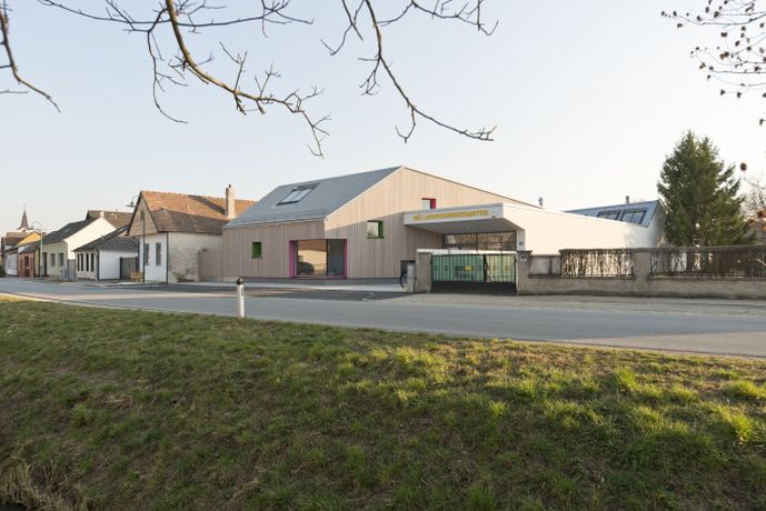 Architektur: Treberspurg & Partner Architekten Bauherrschaft: Stadtgemeinde Wolkersdorf Fertigstellung: Februar 2022 Es führen: Bernhard Kollmann und Christoph Treberspurg von Treberspurg & Partner Architekten, Ortsvorsteher Gerhard Supper für die Bauherrschaft und Christina Brunner von VELUX