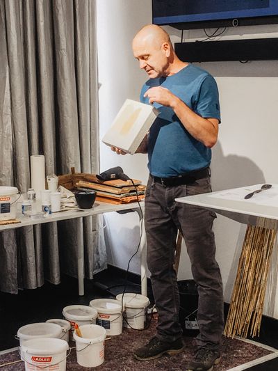 Demonstration zur Herstellung von Kalkfarbe und Kalkputz