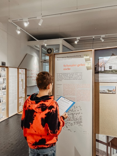 SCHULWORKSHOPSIm Rahmen der Ausstellung “Haus Hof Dorf - Wohnbau am Land” veranstaltete der Architektur Raumburgenland unter der Leitung von Sibylle Bader der Wanderklasse Schulworkshops für Schüler:innen der Ober- und Unterstufe. Zahlreichen Jugendlichen konnten so die Zusammenhänge zwischen unserer gebauten Umwelt und lebenswerten Ortskernen vermittelt werden.